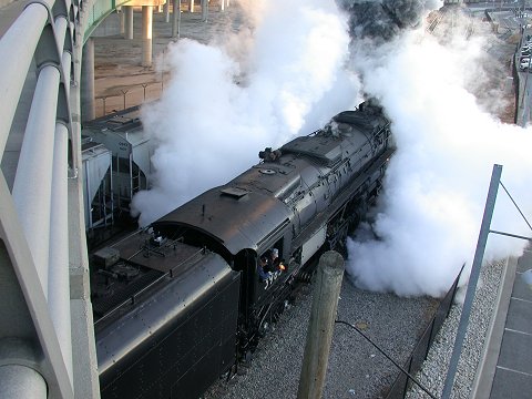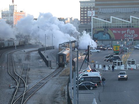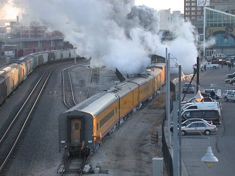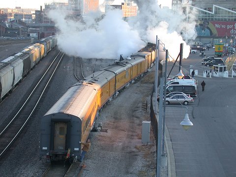 After sitting overnight, 3985 begins the trip to St. Louis, MO Union Station